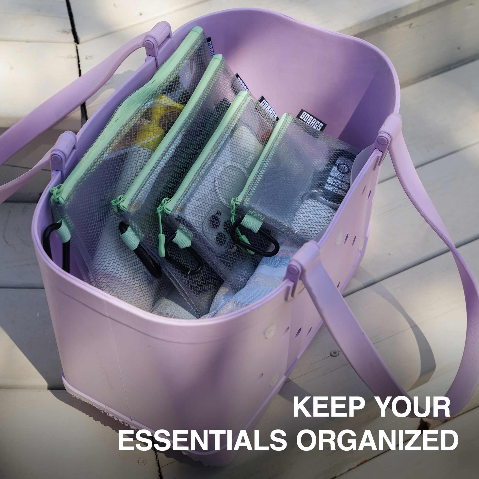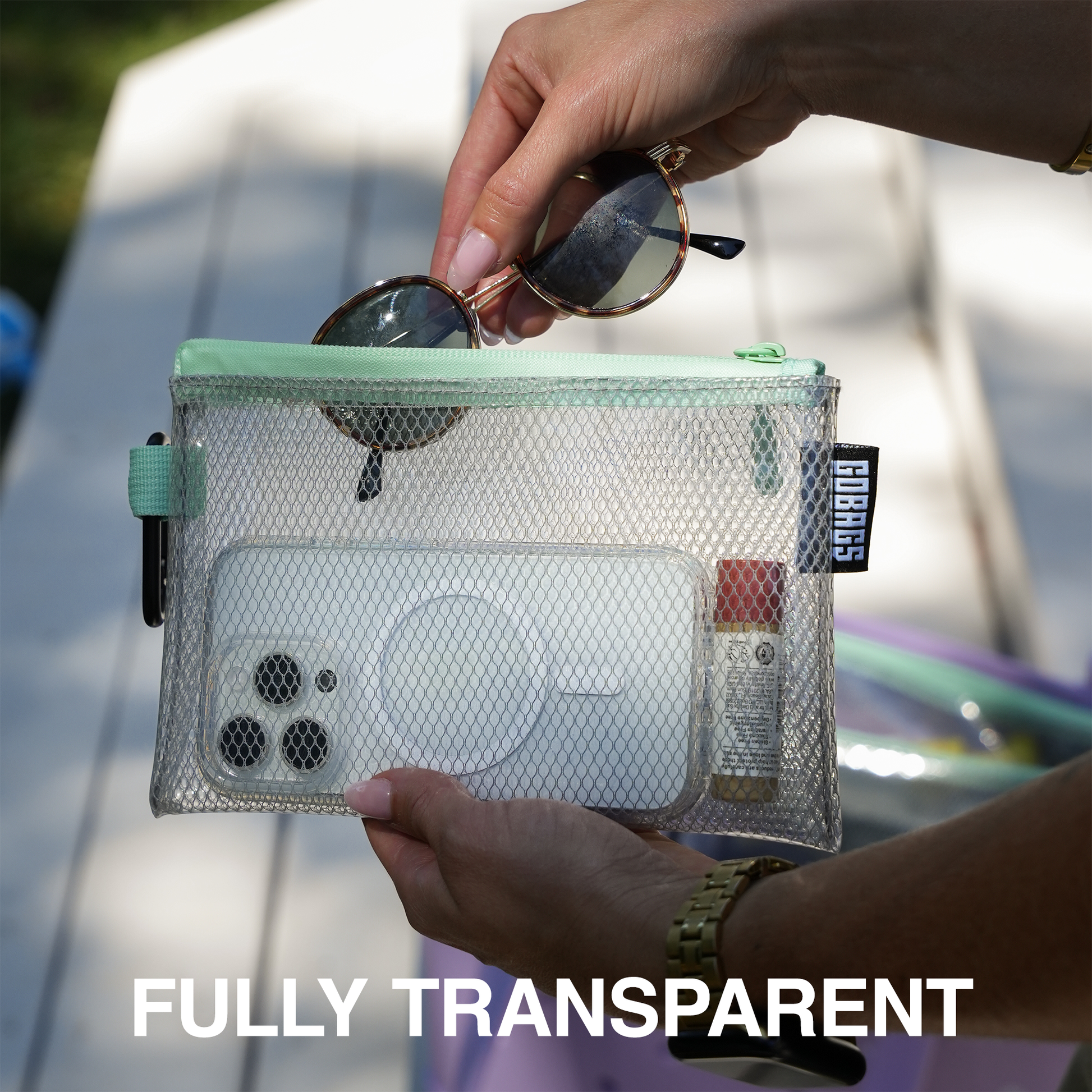 GOBAGS Air Multi‑Size Clear Zipper Pouch (4‑Pack) MINT GREEN